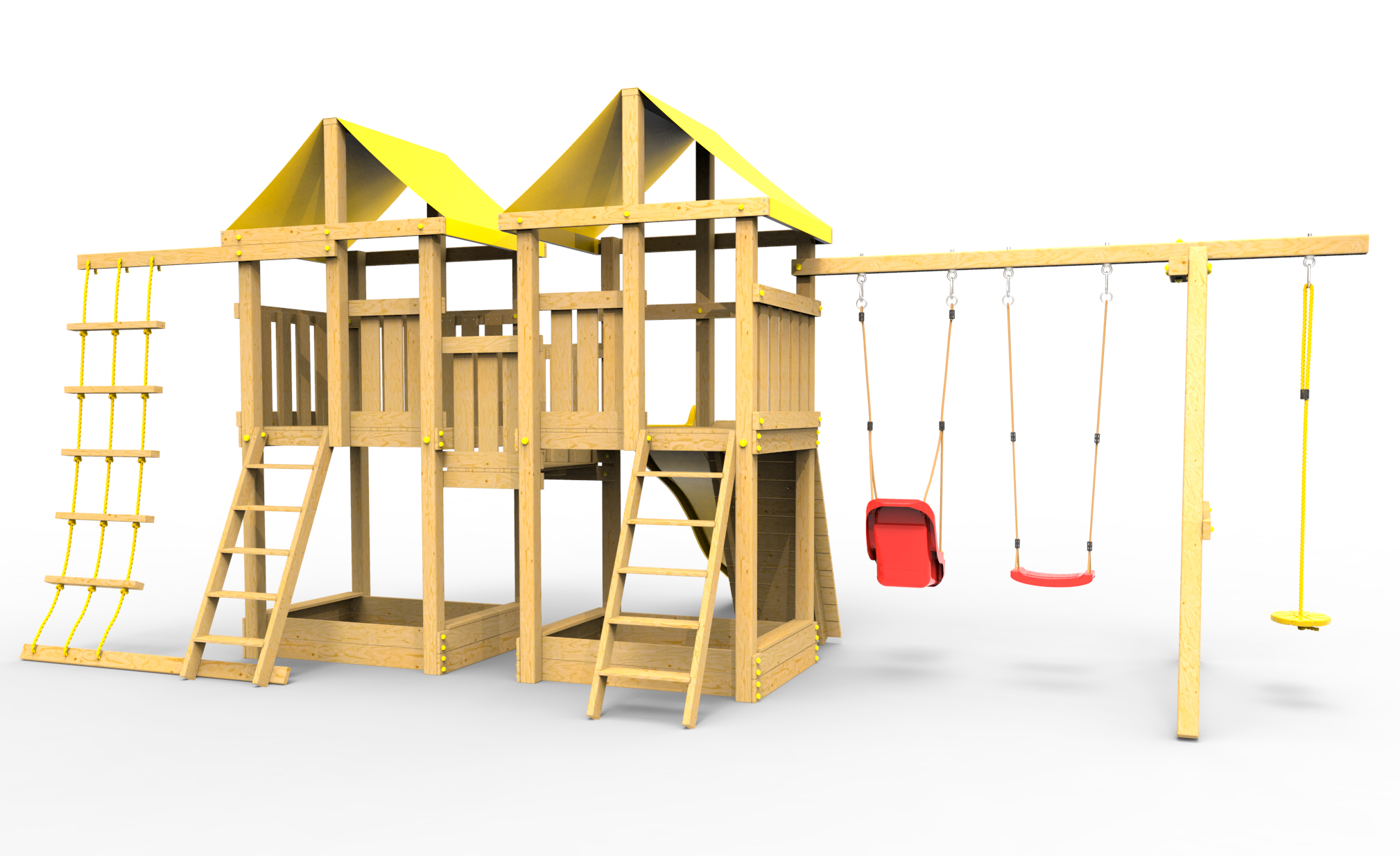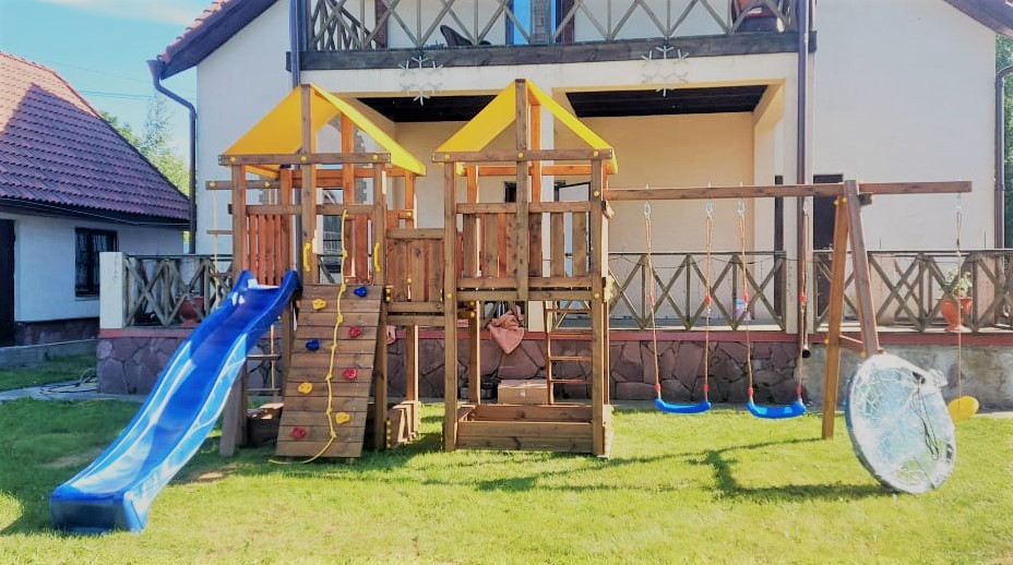 Обращаем Ваше внимание, что фактический цвет детской площадки может отличаться от представленных фото на сайте. Специфика окраски нетоксичными пропитками и красителями допускает отклонения в цветовой гамме отгружаемых изделий. Также обратите внимание, что фактический цвет может отличаться из-за цветопередачи устройства на котором Вы смотрите фото.