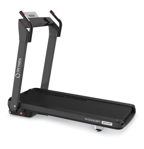 Серия M-Concept - это две уникальные ультракомпактные беговые дорожки от OXYGEN FITNESS™. Толщина тренажера в сложенном виде составляет всего 35 см. (или 30 см. при условии снятия небольших поручней). Дорожка легко помещается под кровать, в кладовку или любое другое небольшое место - хранить ее можно и в горизонтальном, и в вертикальном состоянии. Безусловным преимуществом серии является инновационная система перемещения smartMOVE™ - за счет 4 разнонаправленных роликов тренажер можно перемещать в двух проекциях (вперед-назад и вправо-влево) - это очень удобно и, главное, легко в условиях небольших площадей городских квартир. Отдельно стоит выделить другую крайне полезную технологию smartFOLD™ - тренажер складывается и раскладывается простым способом при помощи одного рычага, на весь процесс уйдет не более 5 секунд. Сама дорожка поставляется в уже собранном виде и никакой инструментальной сборки не требует. Ее просто нужно достать из коробки и подключить к розетке. Теперь стоит перейти к главным преимуществам серии M-Concept. Здесь для начала стоит сказать, что практически все ультракомпактные беговые дорожки страдают ограниченным функционалом. Зачастую это вообще чистый маркетинговый продукт, эксплуатирующий желание потребителя заниматься фитнесом в условиях небольшой городской квартиры. Полноценная беговая дорожка по факту "съедает" до 4-ех квадратных метров площади (многие пользователи не складывают дорожку, плюс необходимая зона безопасности вокруг). Соответственно, ради ультракомпактности жертвуется многим - по факту имеем слабые неустойчивые рамы, откровенно маломощные двигатели, скорость до 6 или 8 км./ч., отсутствие амортизации и угла наклона. Некоторые модели не имеют поручней. Ходьба, и тем более бег на таких дорожках достаточно опасен - при небольшой потере равновесия удержаться не за что, и все в итоге может закончиться травмой. В целом, стоит очень внимательно отнестись к покупке ультракомпактной беговой дорожки, объективно оценить плюс и минусы, понять сможете ли Вы в принципе пользоваться этим изделием. OXYGEN FITNESS™ M-Concept - это принципиально иной подход к компактным беговым дорожкам. Да, возможно, толщина здесь немного больше, чем в ультратонких аналогах. Но это настоящая, полноценная беговая дорожка. На ней можно комфортно и эффективно заниматься, на ней можно достигать реальных результатов в улучшении своей физической формы и, наконец, она безопасна. Итак, давайте посмотрим на характеристики. В M-concept Sport установлен надежный двигатель производства японской Fuji Electric, его мощность составляет 2.25 л.с. в режиме постоянной эксплуатации (или 4.05 л.с. при пиковых нагрузках). Именно мощный двигатель позволяет разогнать полотно до 14 км./ч. Важно, что размер полотна просто огромный для такого компактного тренажера - рабочая беговая поверхность составляет 130 см. в длину и 48 см. в ширину. По второму параметру дорожка вообще приближается к клубному уровню. Более того, в M-Concept Sport есть даже автоматическая регулировка угла наклона от 0 до 12% - за счет чего значительно увеличивается вариативность тренировок. Еще одна ахиллесова пята ультракомпактов - амортизация. По факту ее нет - как бы производитель не доказывал обратное. При такой тонкой раме поставить полноценную систему амортизации невозможно. В серии M-Concept, за счет большей толщины рамы, вопрос решен р